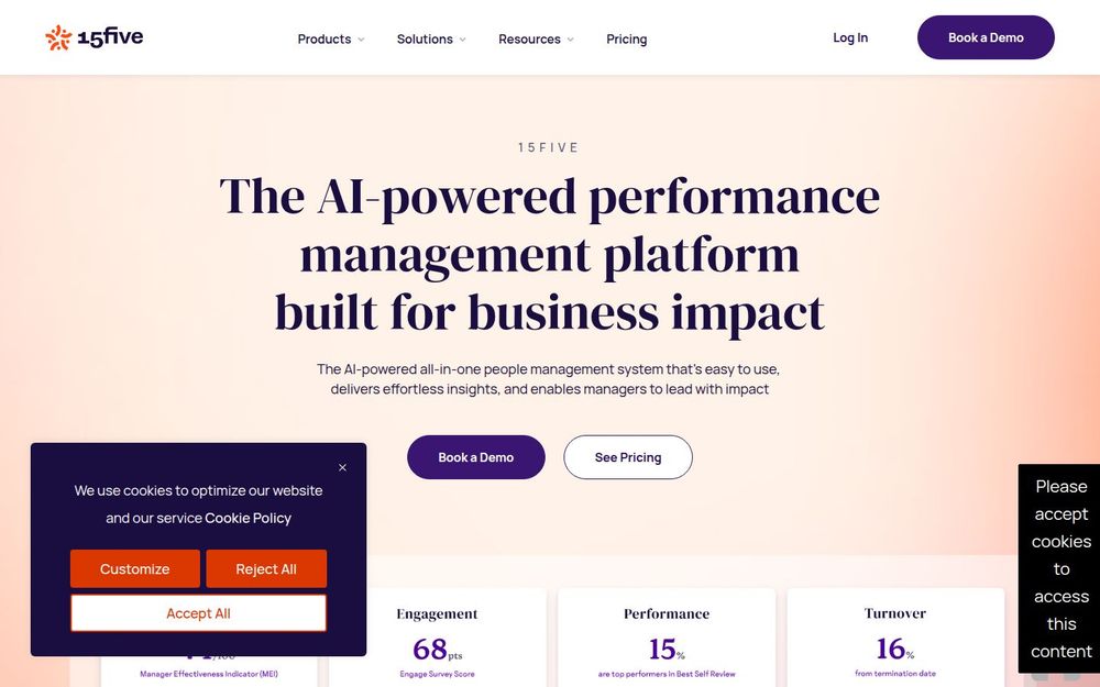 15Five 适合希望把“以人为本”的 HR 策略变成可衡量业务结果的组织。它不仅提供从员工日常反馈到绩效评估再到薪酬决策的一体化平台,还通过 AI 与可视化仪表板,将大量数据转化为管理者可以直接执行的洞察。对于希望提升经理能力、降低可惜离职、并在公司内建立公平透明绩效与薪酬流程的公司,15Five 是一款能够快速见效且易于部署的解决方案。