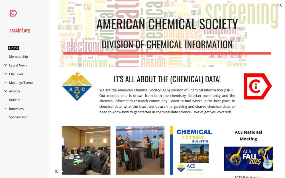 ACS CINF(American Chemical Society Division of Chemical Information)是美国化学学会下致力于化学信息与化学信息学的专业分部。该组织汇聚了化学馆员、化学信息学研究人员与化学数据科学实践者,旨在促进化学数据的组织、共享与应用,支持成员的职业发展并推动领域内的最佳实践与标准化。