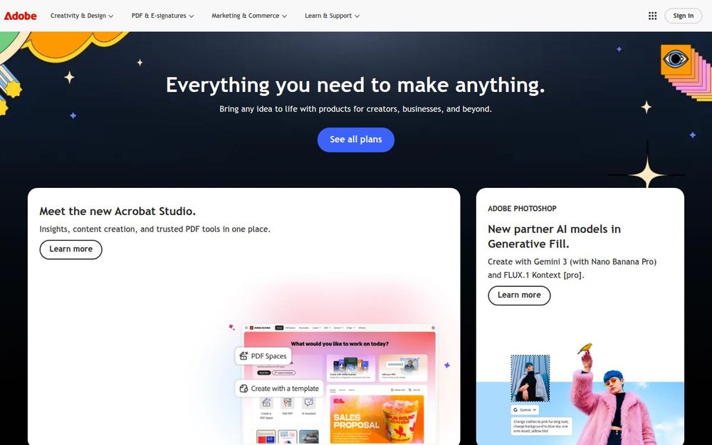 Adobe 是一家提供完整创意与数字体验解决方案的公司,产品线覆盖从个人创作者到大型企业的多种需求。通过 Creative Cloud 套件,用户可访问 Photoshop、Illustrator、Premiere 等业内标准的创作工具;通过 Acrobat 与 Acrobat Studio,用户可以进行可靠的 PDF 创建、编辑与协作;而 Adobe Firefly、Adobe Express 与 Substance 3D 则扩展了生成式 AI、快速内容编辑与三维内容制作能力。Adobe 同时为企业提供以数据为核心的营销与客户体验平台,支持跨渠道的内容管理与分析。