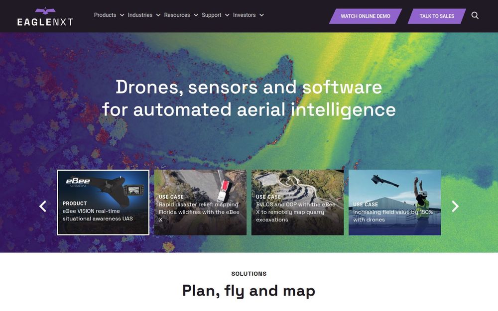 AgEagle(EagleNXT)是一家提供“无人机 + 传感器 + 软件”一体化解决方案的公司,核心目标是为政府、企业与研究机构提供可规模化的空中情报采集与分析能力。其产品线围绕高性能固定翼无人机(eBee系列)、多类型遥感传感器(包括RGB、多光谱、热成像和全色传感器)以及用于飞行控制与数据处理的自动化软件平台(如eMotion、Measure Ground Control)展开,覆盖从任务规划到地图与影像分析的完整流程。