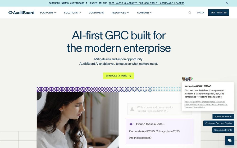 AuditBoard 是一款面向审计、合规与风险管理的企业级平台,定位为 AI-first GRC 解决方案。平台以统一的数据核心为基础,聚合风险、控制、框架和问题,实现跨团队协作与流程联通。借助行业专用的 AI 能力,AuditBoard 助力企业从被动监督转向主动管理,在提升合规性的同时释放审计与风险团队的战略价值。