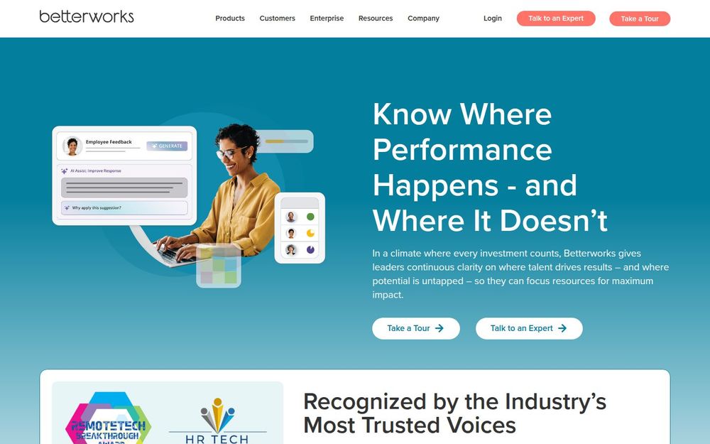 Betterworks 是面向企业的持续绩效管理平台,旨在取代传统的年度绩效评估,推动以目标为导向、以对话为常态的工作方式。它将目标设定、定期检查、即时反馈和数据驱动洞察整合在一个统一的产品中,帮助组织把战略目标下沉到团队与个人层面,从而提升执行力与员工成长。