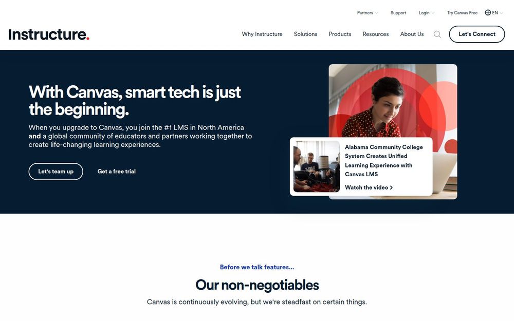 Canvas 基于云端架构,采用开放标准,能够与 1000+ 第三方工具和合作伙伴集成(例如 Google、Turnitin、AWS 等)。系统支持定制化功能设置、层级化权限与品牌化页面,适应不同规模与结构的教育机构。