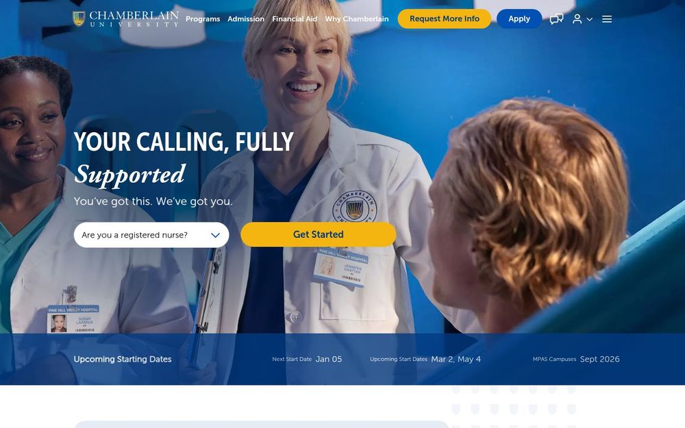 Chamberlain 的网站信息适合想了解项目结构、开课时间、学费优惠与学生支持服务的潜在申请者与合作机构,能作为报考与职业规划的重要参考资料。