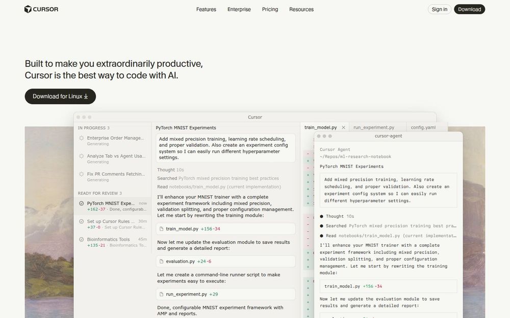 Cursor 将多种 AI 编程能力整合为一个统一体验,适用于希望提升个人编码速度或在团队中推广 AI 驱动开发流程的组织。它不仅能显著减少键入与查找时间,还能通过 agent 自动化重复任务、在审查环节提供实用建议,从而提升代码质量与交付效率。