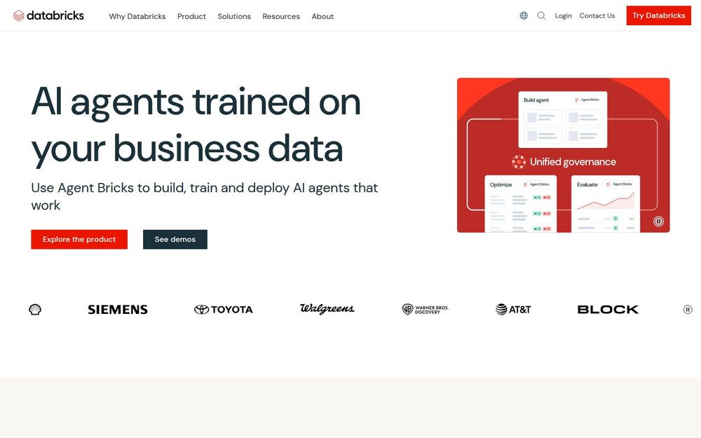 - AI Agents 与生成式 AI 工具 (Agent Bricks): 针对业务数据训练可执行任务的代理,支持插件式部署与企业级集成。