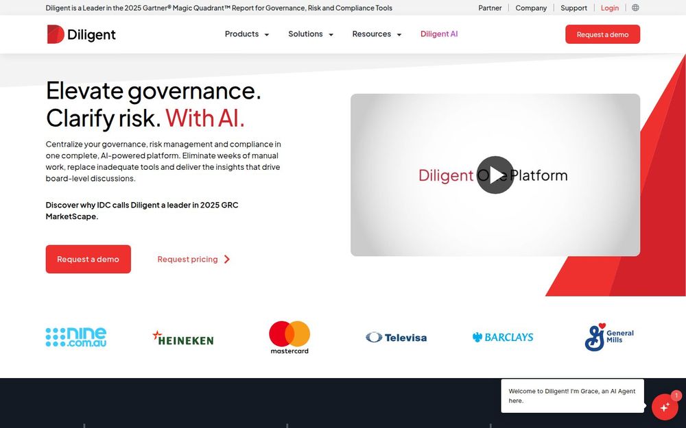 Diligent 是一款面向企业治理、风险管理与合规(GRC)的综合平台,核心目标是通过集中化和智能化手段提升董事会与高管层的决策效率。Diligent One 平台将董事会管理与风险、审计、合规等功能整合于一体,利用内建的 人工智能 与分析能力,把繁琐的手工流程转化为可操作的洞察,帮助组织在快速变化的监管与商业环境中保持弹性与合规性。
