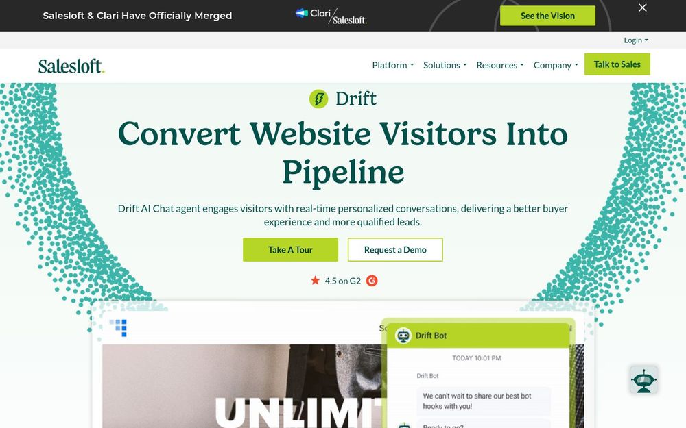Drift 是一款以对话为核心的营销与销售补充平台,旨在通过 AI 聊天代理 将网站访客转化为高质量线索并推动收入增长。平台强调实时、个性化和可衡量的会话体验,帮助企业抓住高意向访客、加速销售周期并将对话与销售工作流无缝联动。
