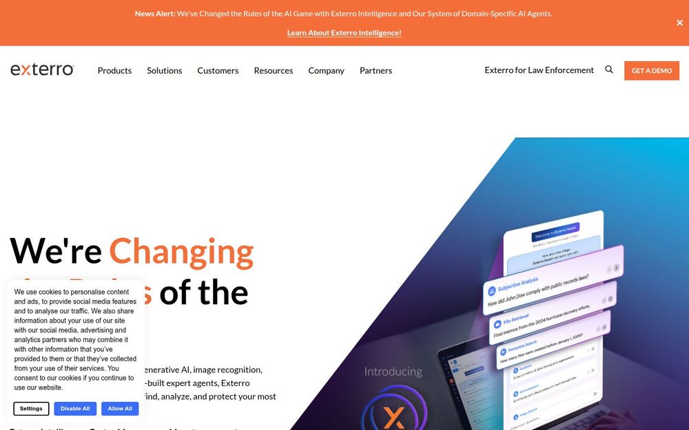 Exterro Intelligence(AI 能力): 将生成式 AI、图像/视频识别与嵌入式机器学习结合,使用领域专用代理完成高精度任务,降低第三方模型带来的风险并保持可审计性。