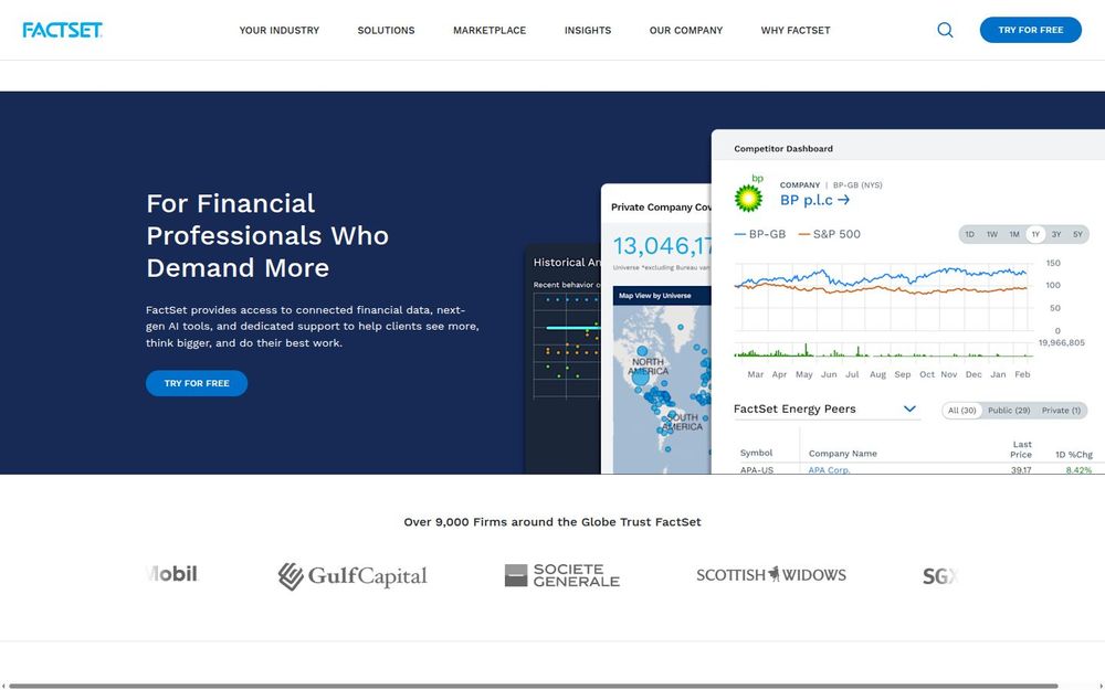 FactSet 适合寻求高质量数据整合、需要将 AI 引入研究与运营流程的资产管理、投资银行及财富管理机构。其优势在于数据覆盖广泛且结构化,AI 与自动化能显著提升分析效率,开放市场与 API 提供灵活的扩展与集成能力,同时强大的客户支持降低部署门槛并确保长期价值实现。对于重视数据准确性、合规性与定制化解决方案的机构,FactSet 提供了从数据获取到模型应用再到运营支持的完整生态。