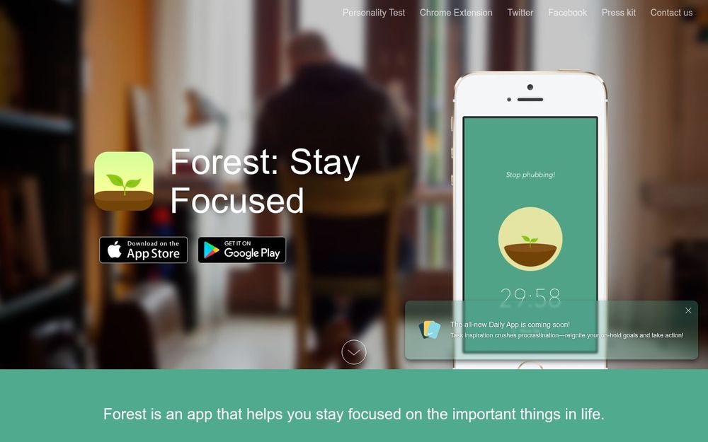 Forest 是一款将专注时长具象化为“树木生长”的时间管理与注意力培育应用。用户在开始专注时“种一棵树”,在规定的专注时段内保持不使用手机或离开应用,树木会持续成长;如果中途退出或分心,树木则会枯死。除了个人成长记录,Forest 通过虚拟金币与现实植树相结合的方式,将用户的专注行为延展为环境公益行动,页面展示了累计真实植树数量,体现社会影响力。