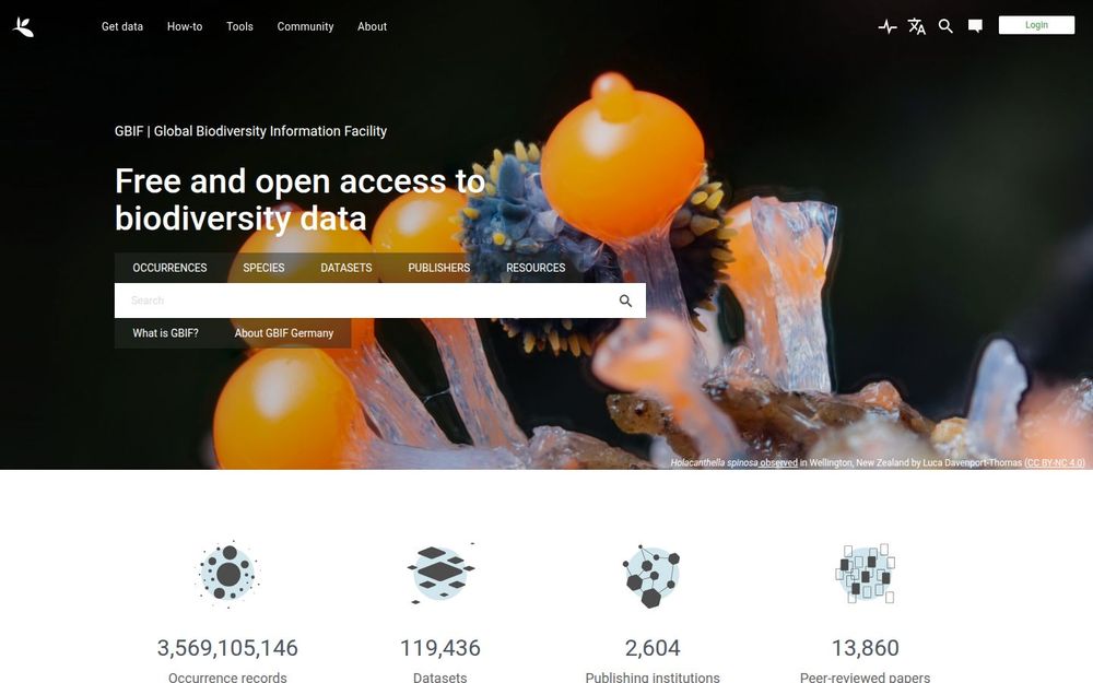 GBIF(Global Biodiversity Information Facility)是由多国政府资助的国际网络与数据基础设施,目标是为任何地方的任何人提供关于地球生命形式的免费与开放数据访问。网站汇集了大量的发生记录(Occurrence records)、数据集(Datasets)与发布机构(Publishing institutions),并将这些数据应用在科研、政策和公众教育等多个领域。GBIF 同时提供搜索工具、API、托管门户与能力提升项目,支持数据的发现、获取、发布与再利用。