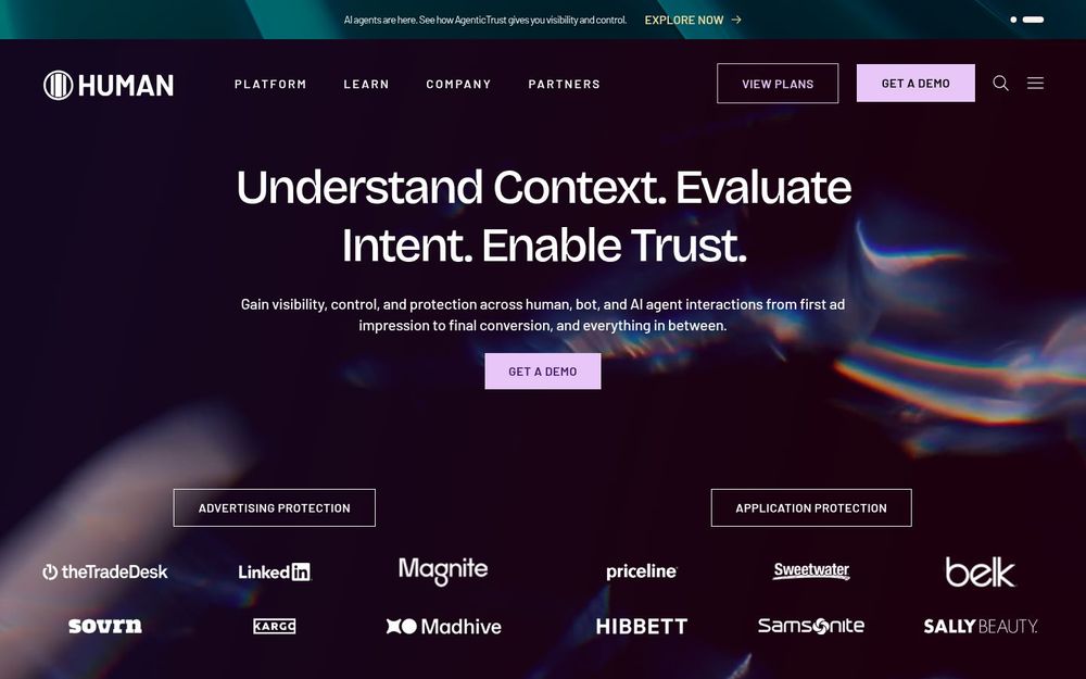 HUMAN 是一款面向企业的统一反欺诈与机器人管理平台,致力于在用户旅程的每一个环节(从广告初次展示到最终转化)识别并区分真实人类、机器人与**自主代理(AI agent)**行为。平台以大规模数据采集、实时分析与自适应模型为支撑,强调在不损害用户体验的前提下最大化拦截威胁与降低误报。