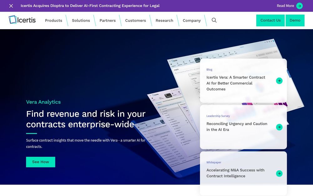 - Vera AI 与 Vera Copilot:基于自然语言的助理与分析引擎,用于洞察合同中的风险与营收机会,并通过对话式交互加速查询与决策。
