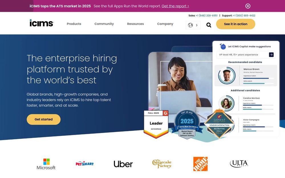 iCIMS 适合需要大规模招聘、重视候选人体验与合规管理的企业。其优势在于端到端覆盖招聘生命周期、丰富的产品矩阵与广泛的集成生态,能够在零售、医疗、制造、金融等行业实现标准化与流程化的招聘运营。此外,iCIMS 提供实施服务、培训与客户成功支持,帮助企业降低 IT 运维时间并提升 ROI,使其成为大型组织和跨国公司的常用选择。