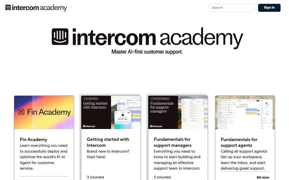 Intercom Academy 是 Intercom 官方的学习与培训中心,旨在为使用 Intercom 的团队与个人提供系统化的学习资源。平台覆盖从基础安装与工作区设置到复杂自动化、知识库管理和 AI 助手的实战应用,内容既适合初学者快速上手,也适合希望通过认证证明能力的专业人士。课程多为模块化短视频与实操演示,并配有模板、练习和考核,便于团队在真实场景中复用与落地。
