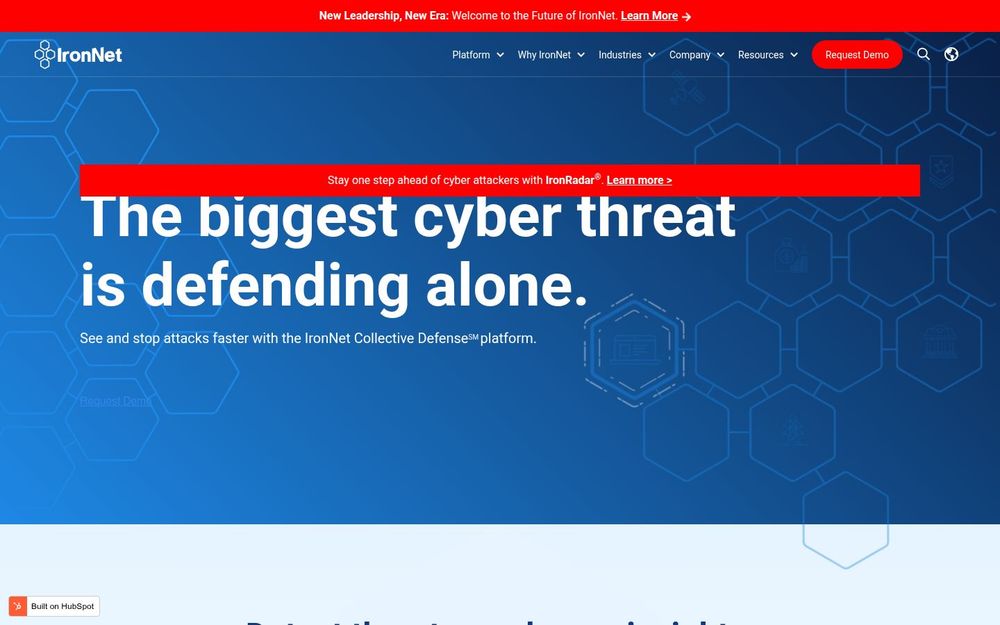 IronNet 是以“集体防御”(Collective Defense)为核心的网络安全平台厂商,主张通过跨组织的实时威胁共享和协同检测来提升行业整体抗风险能力。其产品组合包括面向网络的检测与响应(NDR)、主动威胁情报(IronRadar)、自动化情报交换(IronDome)以及托管的 24/7 SOC 服务(Overwatch),覆盖从威胁发现到处置的端到端流程。