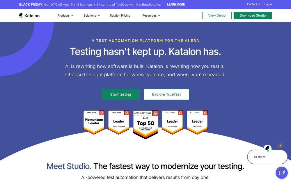 Katalon 是为 AI 驱动的软件开发与测试而设计的一体化测试自动化平台。它以AI 辅助测试为核心,兼顾无代码/低代码的易用性与高级脚本化的可定制性,帮助团队从设计、执行到分析实现端到端的质量管理。适用于从小型团队到大型企业的不同规模场景,支持在本地、云端或 CI/CD 环境中扩展测试执行。