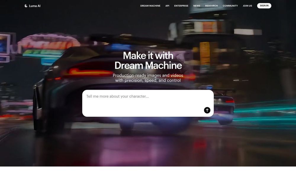 Luma API: 对外开放的接口,使开发者和企业能够把 Luma 的图像与视频生成功能嵌入产品,支持规模化创意生产與定制化集成。