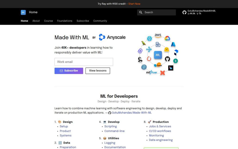 Made With ML 强调实践与工程化,是一个兼顾理论与落地能力的学习资源库;并入 Anyscale 后,内容与生态的延展性更强,适合希望在工业规模和多种云平台上扩展 ML 工作负载的开发者继续深造。