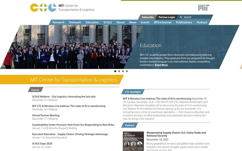 MIT Center for Transportation & Logistics(MIT CTL)是麻省理工学院的重要研究与教育机构,专注于供应链与物流领域的前沿研究、人才培养与产业推广。通过整合学院内外的学术资源、企业合作伙伴与国际 SCALE 网络,MIT CTL 致力于将理论与实践结合,推动供应链的创新、可持续性与韧性发展。