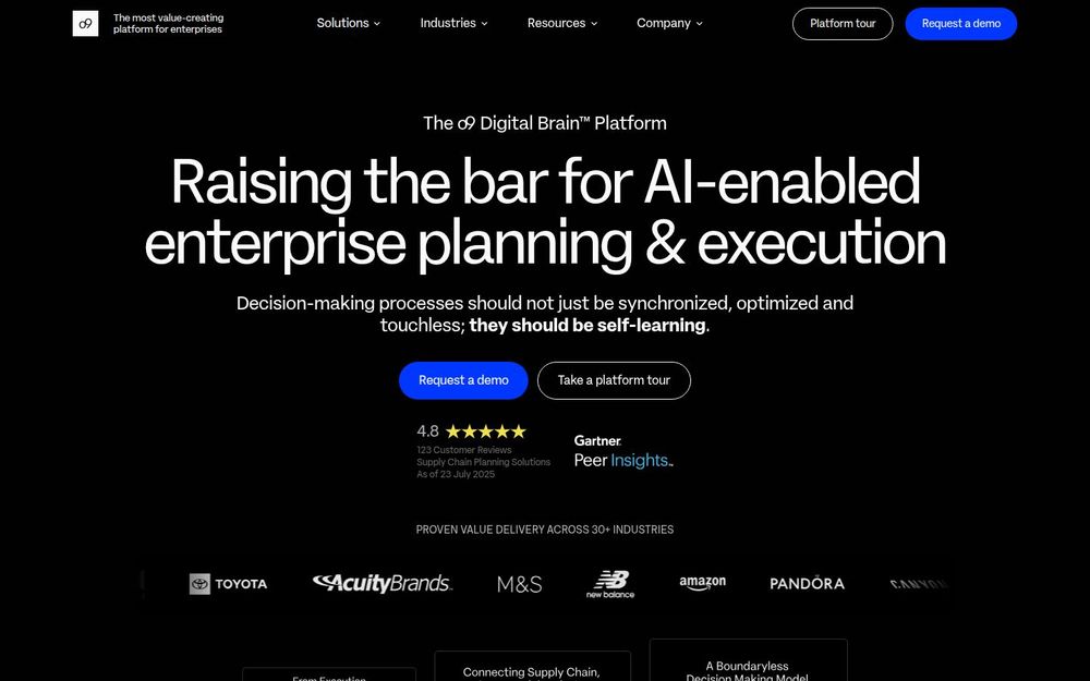 o9 不仅提供功能广泛的产品组合,还依托丰富的客户案例与合作伙伴生态(如咨询与云服务提供商)加速落地。其以 AI 为核心的自学习能力和数字孪生方式,能在不确定性增加的市场环境中显著提升响应速度、可视化与决策质量。对于需要将战略与执行紧密联动、并在多时域、多组织边界内协同规划的大型企业,o9 提供了兼顾灵活性与可扩展性的解决路径。