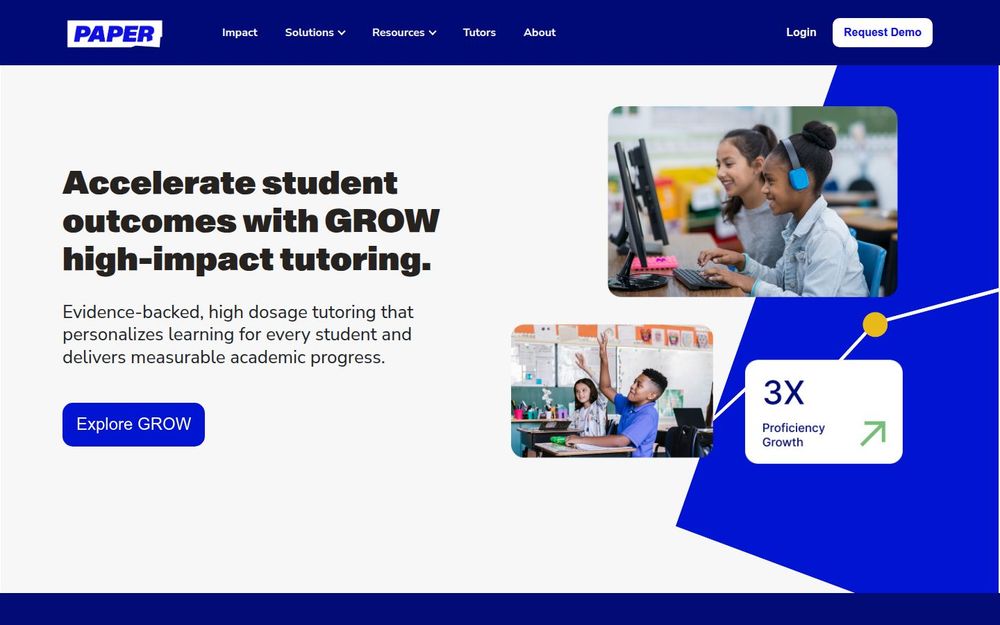 Paper 适用于希望通过外部支持提升学生成绩并缩小差距的学区与学校系统。无论是作为课堂内的补充工具、MTSS 流程中的 Tier 2 干预,还是作为全校范围的全天候学术支持平台,Paper 都能提供可扩展的实施路径。其服务能够在不显著增加校方人力负担的情况下,帮助学区提升学生的学业表现与测试成绩。