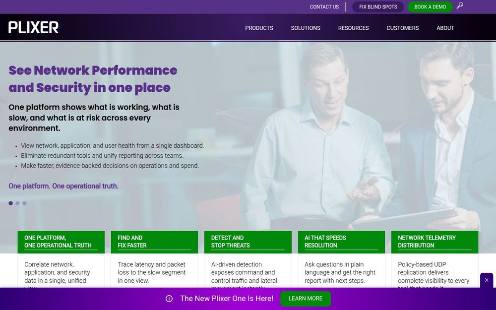 Plixer 提供的 Plixer One 是一个面向企业级的统一可观测性平台,旨在将网络、应用和安全遥测数据在单一控制台中关联展示。平台强调“一个平台、一致真相”的理念,使 NetOps 与 SecOps 团队能够共享同一份情报、统一故障排查流程并协同响应安全事件。Plixer 支持跨本地与云环境、传统网络与零信任架构的可视化,适用于需要高可见性和快速定位问题的大型网络环境。