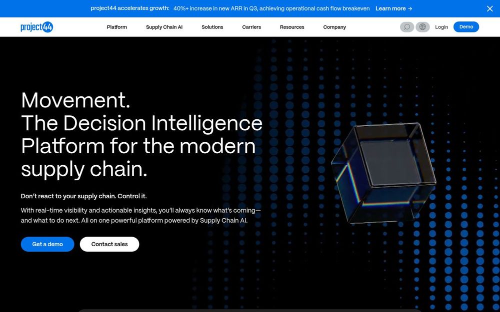 project44 的核心产品 Movement 被定位为面向现代供应链的 Decision Intelligence Platform(决策智能平台)。平台通过汇聚全球运输与物流数据,结合 Supply Chain AI,为企业提供实时可视化、智能预警与可执行建议,使企业能够从“被动响应”转为“主动控制”。无论是海运、陆运、空运还是最后一公里配送,project44 致力于消除盲区、简化流程并推动可衡量的业务成果。