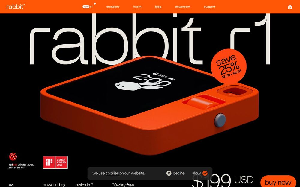 rabbit R1 是由 rabbit 打造、运行 rabbitOS 2 的便携 AI 助手设备,定位于将创意与日常任务通过智能化、个性化的方式结合在一起。R1 强调“创造即体验”的理念,用户可以通过内置工具将任意想象转化为专属的互动内容,并在 creations 画廊中分享与发现他人的作品。