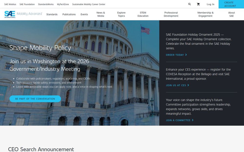 SAE 国际(SAE International)是一个聚焦移动出行与工程技术的全球专业组织,长期在汽车、航空、国防与相关领域推动技术标准、学术研究和职业发展。网站汇集了标准化资源、技术出版物、专业培训与行业活动,面向工程师、研究人员、企业与决策者提供系统化的知识与协作平台。通过线上数据库、期刊与会议,SAE 致力于把最新技术成果转化为可实施的规范与实践。