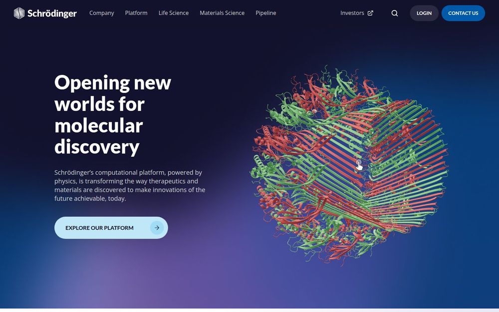Schrödinger 的平台面向生命科学与材料科学两大领域:在药物发现中用于靶点选择、先导化合物发现与优化;在材料科学中用于分子层面设计、性能预测与配方优化。同时,公司运营自己的药物管线,通过平台驱动协作与内部研发。