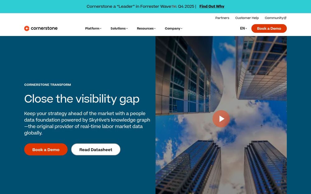Cornerstone Transform 是由 Cornerstone 与 SkyHive 技术合作推动的以技能为核心的人才与劳动力智能解决方案。该方案将实时劳动市场数据、人工智能分析和企业内部人力数据融合,构建起用于人才战略、岗位匹配和员工发展的一体化数据基础。面向希望从被动管理人才转向主动驱动人才发展的组织,Cornerstone Transform 提供从技能发现到路径规划的闭环能力。