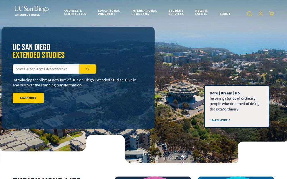 加州大学圣地亚哥延伸学院(UC San Diego Extended Studies)作为 UC San Diego 的继续教育分支,旨在为各类学习者提供灵活、实用且有职业导向的教育服务。平台覆盖短期课程、专业证书、企业定制培训、国际项目、终身学习项目与职业安全认证等多方面内容,强调与行业需求的衔接与实践能力的培养。