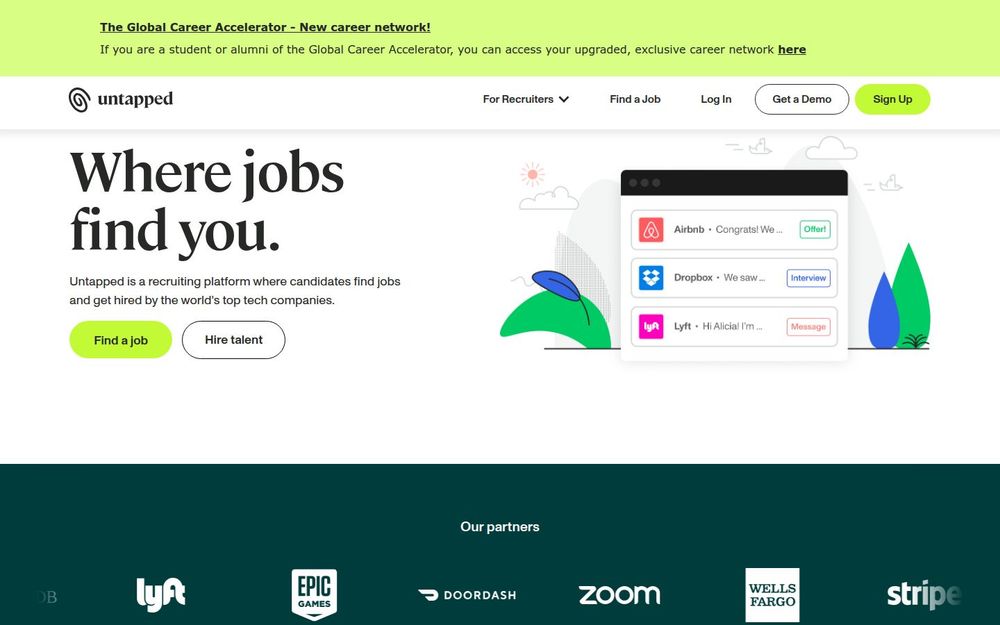 Untapped 是面向科技与金融行业的招聘与求职平台,目标是让“工作主动找上你”。平台既服务求职者,也服务招聘方,通过更完整的候选人资料、社群互动与智能匹配来缩短招聘周期并提升公平性。Untapped 强调去除以学校或传统经历为主的单一筛选维度,帮助来自不同背景的候选人被更多企业发现。