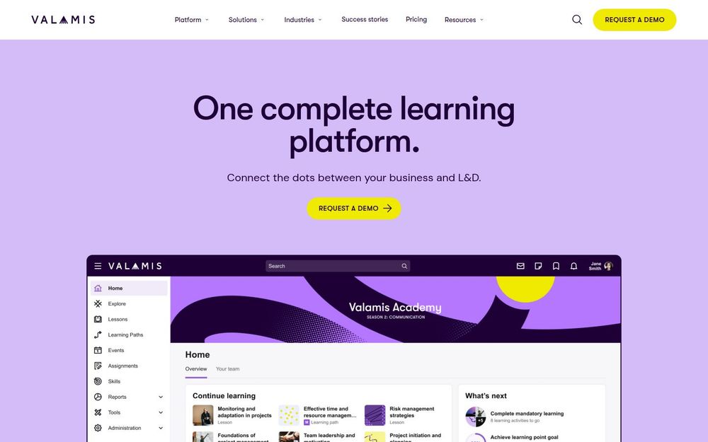 Valamis 是一款面向企业的一体化学习平台(LMS),旨在把学习与业务目标、技能发展与绩效评估连接起来。该平台强调可扩展性与集成能力,支持多语言、移动端访问以及面向企业的扩展学习场景(如经销商、分包商与客户培训)。Valamis 提供从入职培训到合规管理、技能培养和分析洞察的端到端功能,帮助组织实现可衡量的学习成果和成本优化。