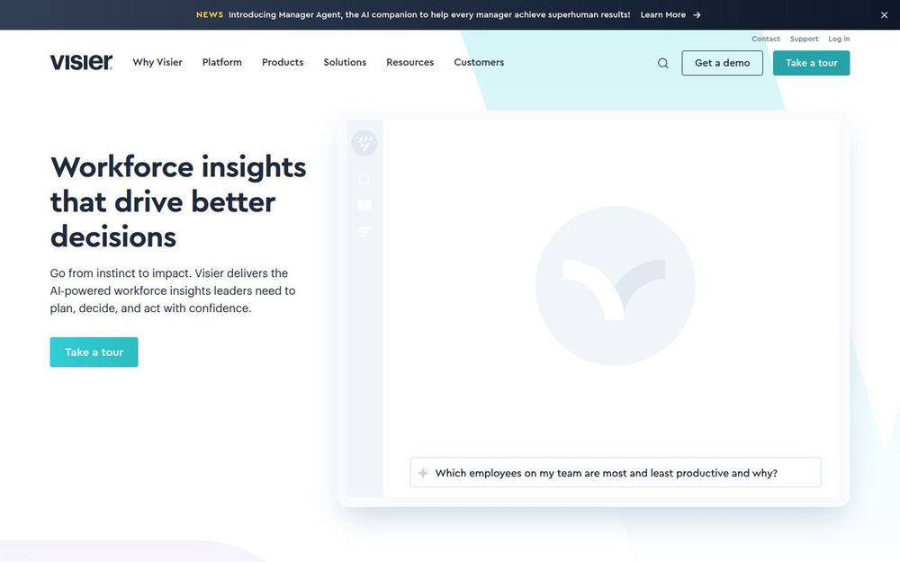 Visier 是面向企业的人力分析与劳动力规划平台,旨在把分散的 HR 与业务数据统一为可操作的洞察,帮助组织从“直觉”转向“影响”。平台核心为 Visier People,并延伸出专门的 People Analytics AI Agent(Vee),可嵌入到 Copilot、Teams、Slack 等常用工作流中,为不同角色在需要时提供即时的人员分析答案。Visier 强调企业级的安全与治理,提供完整的数据模型和大量预构建资源,加速价值交付与组织采用。