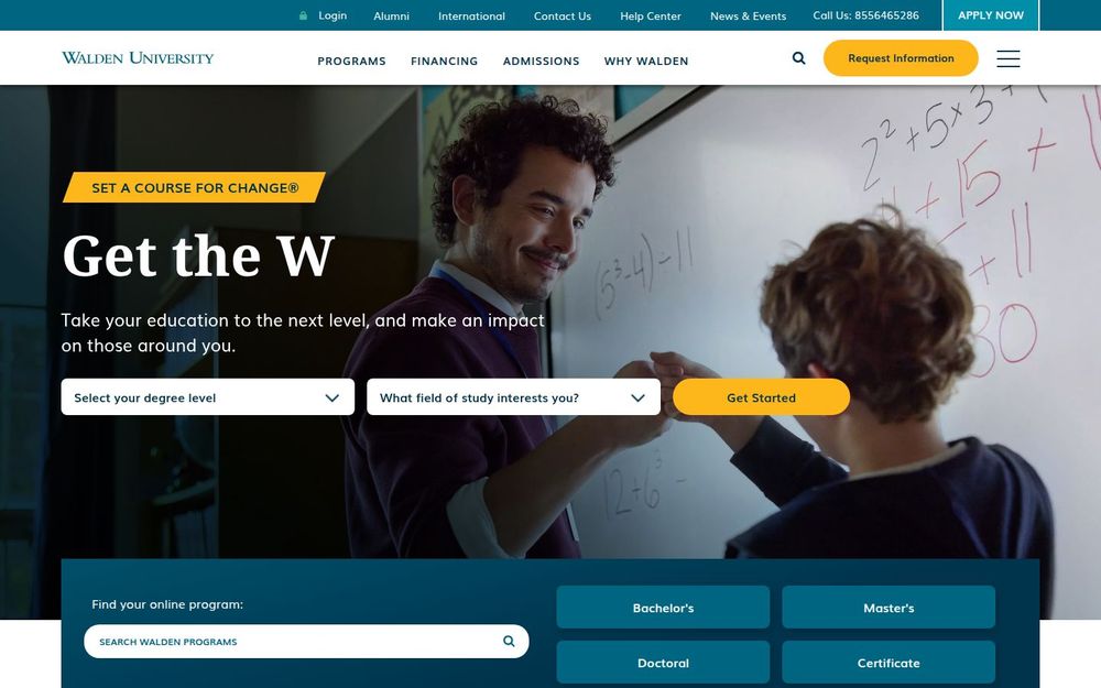 Walden University 是一家以在线教育为核心、面向在职成年人和职业人士的高等教育机构。自 1970 年以来,Walden 致力于为有职业发展需求的学习者提供灵活且以职业为导向的课程体系。学校提供超过 100+ 学位与证书,覆盖商学、教育、护理、心理学、社会工作、公共政策、信息技术等多个领域,兼顾学术严谨性与实际技能培养。